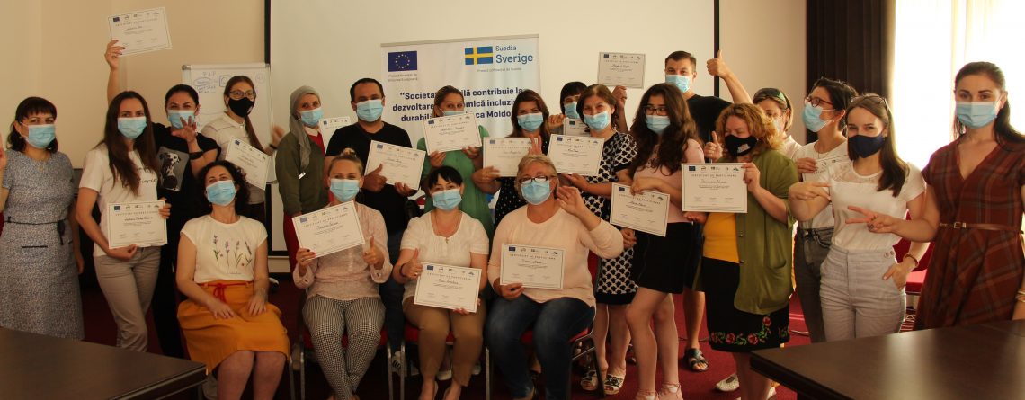 45 представителей общественных организаций из различных регионов страны, в том числе из приднестровского региона и АТО Гагаузия приняли участие в программе обучения Социальное предпринимательство – от идеи к делу. Тренинги проходили в рамках проекта «Вклад гражданского сообщества в инклюзивное и устойчивое развитие страны», реализованного Восточноевропейским фондом совместно с Центром «КОНТАКТ» и Ассоциацией Европейского Бизнеса, при финансовой поддержке Европейского Союза и со-финансировании Швецией.