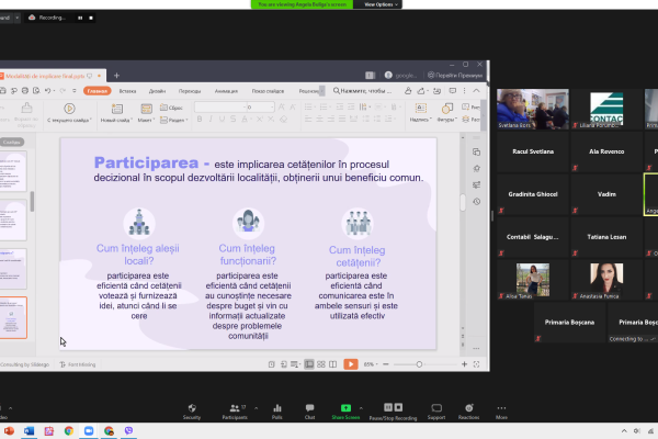„Participarea bugetară este implicarea cetățenilor în procesul decizional referitor la bugetul public. Cetățenii solicită informații care cad sub incidența transparenței și vin cu propuneri, sfaturi, idei, strategii sau proiecte care ar facilita ori ar direcționa mai corect finanțele publice în scopul unui beneficiu comun. Comunitatea trebuie să prospere, de aceea cetățeanul cere să fie informat, dorește să-și spună opinia, să contribuie la luarea deciziilor și să participe la realizarea lor. Cetățeanul trebuie să fie activ, util comunității și prin participarea bugetară o poate face”, a menționat Svetlana Borș, participantă din Boșcana r. Criuleni.
