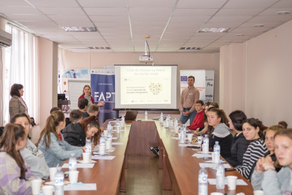 La atelierul de discuție au participat elevii școlii profesionale din regiune, dar și o mică parte a elevilor liceului din localitate. Așezați la o masă rotundă, tinerii au avut un dialog deschis despre problemele cu care se confruntă comunitatea lor și cum antreprenoriatul social poate contribui la rezolvarea acestora.