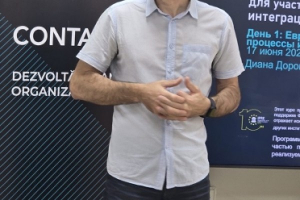 În prima parte a cursului, participanții au aflat mai multe despre fundamentele Uniunii Europene, beneficiile și etapele procesului de aderare pentru Republica Moldova, precum și rolul esențial al societății civile în acest proces. Un dialog aplicat cu un reprezentant al Biroului pentru Integrare Europeană a completat prima zi.