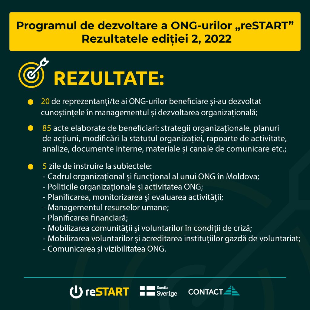 Prin intermediul programului de dezvoltare al ONG-urilor: „reSTART, vom contribui la formarea unei comunități al organizațiilor prestatoare de servicii calitative.